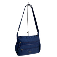 Сумка застёгивается на молнию, внутри одно отделение. Цвет синий с белым, размер XL.