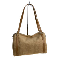 Элегантная женская сумка из искусственной замши и искусственной кожи. Закрывается на клапан с поворотным замком и молнию, внутри два отделения на молнии, дополнительный карман на молнии. Сумка имеет длинный плечевой ремень. Дополнена цепочкой с крупными звеньями.