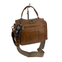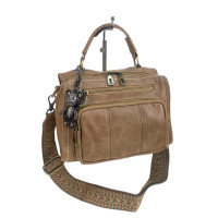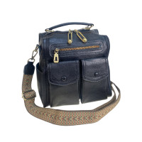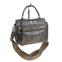 Элегантная женская сумка из искусственной кожи. Сумка имеет три отделения: центральное закрывается на молнию, два крайних на магнитные кнопки. Внутри центрального отделения дополнительный карман на молнии и открытый карман. В комплекте длинный плечевой ремень.