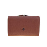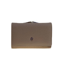 Компактный женский кошелёк из искусственной кожи. Кошелёк закрывается на кнопку. Внутри одно полноразмерное отделение под купюры, 6 отсеков для карт и три небольших открытых отделения. Снаружи отделение с фермуаром.