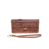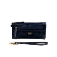Полноразмерный женский кошелёк из искусственной кожи. Кошелёк закрывается на магнитную кнопку. Внутри четыре открытых отделения под купюры, отделение на молнии, 12 отсеков для карт. Снаружи два отделения на молнии . В комплекте ремешок.