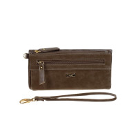 Полноразмерный женский кошелёк из искусственной кожи. Кошелёк закрывается на магнитную кнопку. Внутри четыре открытых отделения под купюры, отделение на молнии, 12 отсеков для карт. Снаружи два отделения на молнии . В комплекте ремешок.