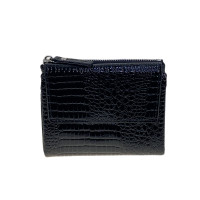 Компактный женский кошелёк из искусственной кожи. Кошелёк закрывается наскрытую магнитную кнопку. Внутри одно полноразмерное отделение под купюры, 6 отсеков для карт и три небольших открытых отделения. Снаружи отделение на молнии.
