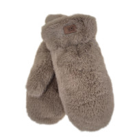 На фото 1 - Зимние женские варежки с подкладом из искусственного меха, цвет хаки